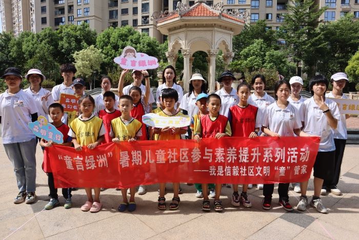 習近平總書記指出“要為少年兒童辦實事,讓孩子們成長得更好”,為推動新時代文明理念向低齡化普及,助力兒童健康成長,集美大學童言綠洲實踐隊于7月25日在信毅社區帶領社區兒童開展“我是信毅社區文明‘童’管家”暑期兒童社區參與素養實踐活動。