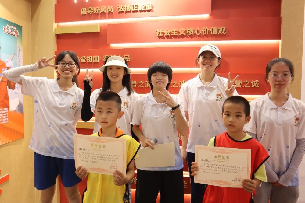 實踐結束后實踐隊隊員為學生頒獎并與他們合照