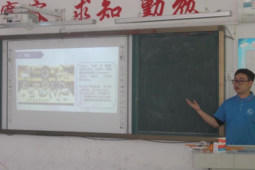 我們的隊(duì)員采取搶答的方式以了解同學(xué)們對(duì)陶瓷文化的了解程度。講述陶瓷的起源、陶瓷的用處、淄博特色陶瓷發(fā)展歷史以及淄博發(fā)展特色陶瓷產(chǎn)業(yè)為同學(xué)們講述陶瓷制作過程。讓同學(xué)們對(duì)陶瓷的由來、陶瓷的發(fā)展、陶瓷的制作更加感興趣,在興趣中尋找歡樂,在歡樂中氤氳陶瓷文化、淄博文化。