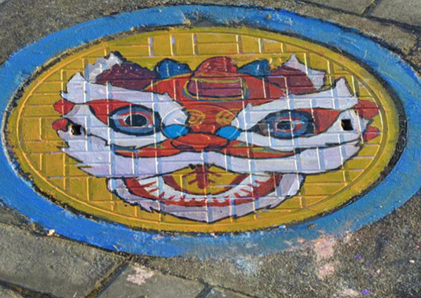 圖為宣揚傳統文化的井蓋彩繪。多彩大學生網通訊員 夏杰 攝