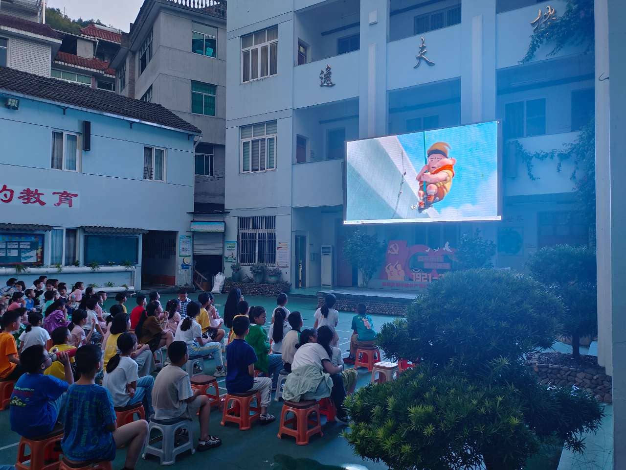吃過晚飯,孩子們在活動場集合,一同觀看了露天電影《飛屋環(huán)游記》。在電影觀看的途中,孩子們隨著電影情節(jié)有時歡笑,有時緊張得跺腳。從電影中孩子們不僅學(xué)會了只要勇于堅持冒險就可以看到不可思議的美麗風(fēng)景,還可以體會到卡爾對艾莉那種濃情的愛。隨著天色慢慢變暗,電影也進(jìn)入了尾聲,意猶未盡的孩子們開始陸續(xù)回教室收拾東西。回到了各自的寢室,享受閱讀時間。當(dāng)八點的鐘聲響起,孩子們逐漸進(jìn)入了夢想。隊員們也結(jié)束了一天的任務(wù),即使拖著疲憊的身體,但也仍然期待著明天。