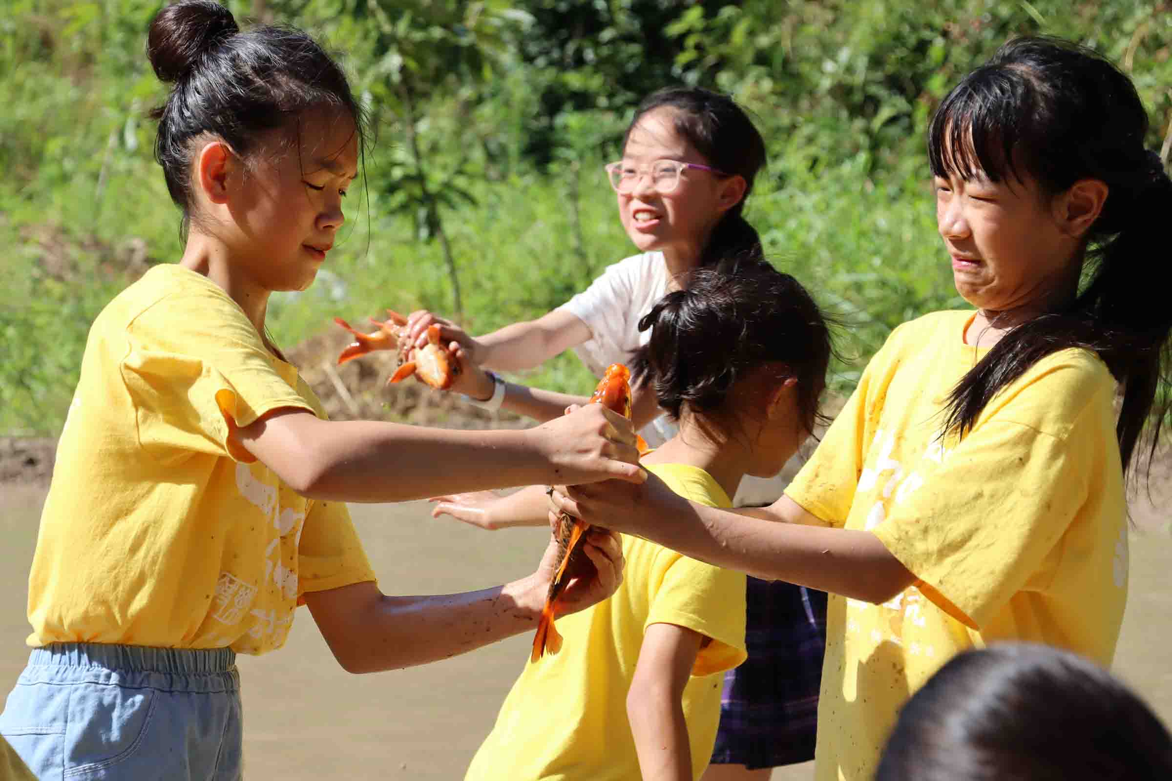 7月6日是隊員們到達(dá)長坑的第五天。今天上午的第一個活動是“泥田初體驗”,孩子們都提前穿上了拖鞋,待在教室稍作調(diào)整后,隊員帶著孩子們,沿著蜿蜒的小溪,順著鄉(xiāng)間的小路向目的地進(jìn)發(fā)。不一會兒,大家抵達(dá)目的地,充滿了干勁的男孩子們看到眼前的泥田,直接沖鋒在前,而后面的女生則跟在老師和隊員后,有序下了泥田。當(dāng)然在泥田里不只是簡單地玩泥巴而已,老師和隊員首先帶著孩子們捉魚。泥田里的魚,泥濘覆蓋了魚的表面,盡管在泥中游得比小溪中慢了許多,但不比水中的魚好抓,孩子們常常伸出雙手,明明已經(jīng)觸碰到了魚的身體,但在握住的那一刻,魚又從他們的手中滑走。但孩子們的好勝心是不會輕易撲滅的,每個小朋友都不斷嘗試,互相幫助,在最后,每個小朋友都捉到了屬于自己的那條魚。