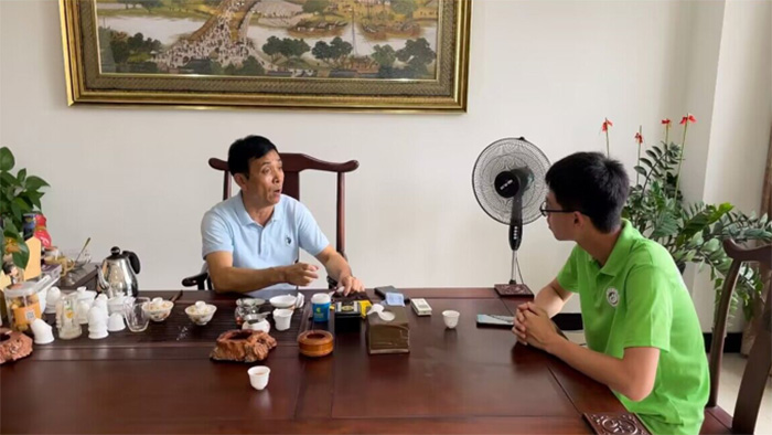 圖為7月23日小隊成員采訪吳總(孟鴻羽拍攝)