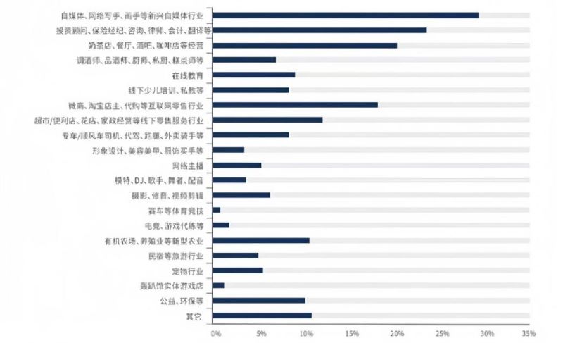 根據度小滿攜華夏時報金融研究院調查結果顯示,自媒體、網絡寫手、畫手等新興自媒體行業最受創業者的青睞。新冠疫情以來,失業率的不斷攀升使人們意識到一個新的時代正在悄然來臨,互聯網、電子商務以及新媒體將成為新青年一代創業的主舞臺。