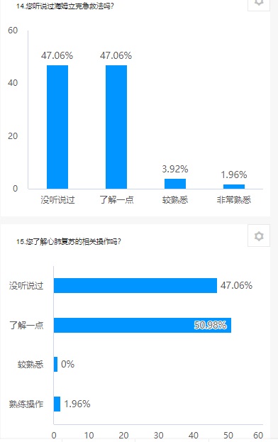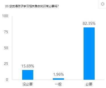 在調查中,53%的被訪者獲得急救知識的途徑為電視、收音機等媒體,超86%的被訪者擔心自己的孩子發生意外傷害,而20%的被訪者說其小孩曾經發生過意外傷害,67%的被訪者認為對了解急救意外傷害相關知識很有必要,83%的被訪者認為孩子也應該學習相關的急救知識。