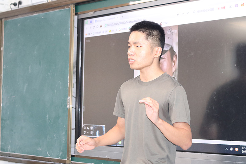 課堂上的孩子們在聽完分享的故事時,稚嫩的眼神似乎堅定了許多,其中一位學生表示,他長大也想成為一名保家為國的軍人,拿著手中的武器,保護自己身后的祖國,像烈士前輩們一樣,堅強且偉大。