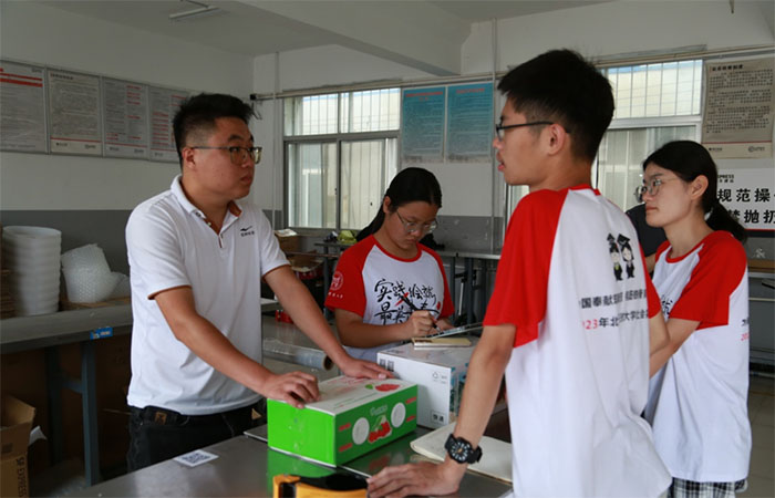 2023年7月27日上午,北京科技大學弦歌實踐團碩果長鮮分隊到達山東省威海市文登區開展為期14天的水果保鮮調研活動。