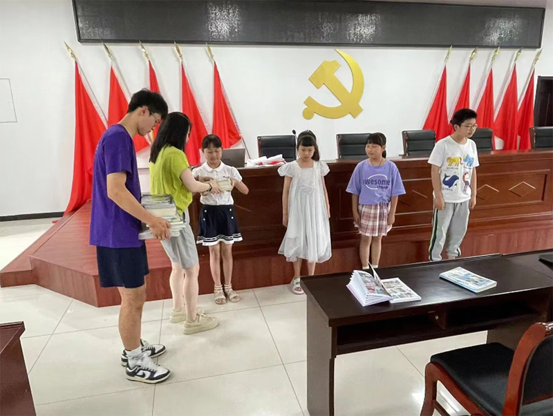 此次活動圍繞"趣"這個字來展開,26日上午九點四十分,由體育學院學生支部書記、院長助理倪嘉丹老師帶隊的暑期社會實踐小分隊到達溧水區桑園蒲社區,進行開班儀式---"趣”認識吧。 儀式中,倪老師希望團隊成員們能夠振奮精神,各盡其職,與小朋友們共同進步,用實際行動展現體育學院學子的責任與擔當。 捐出一本書,播種一個希望,放飛一個夢想。