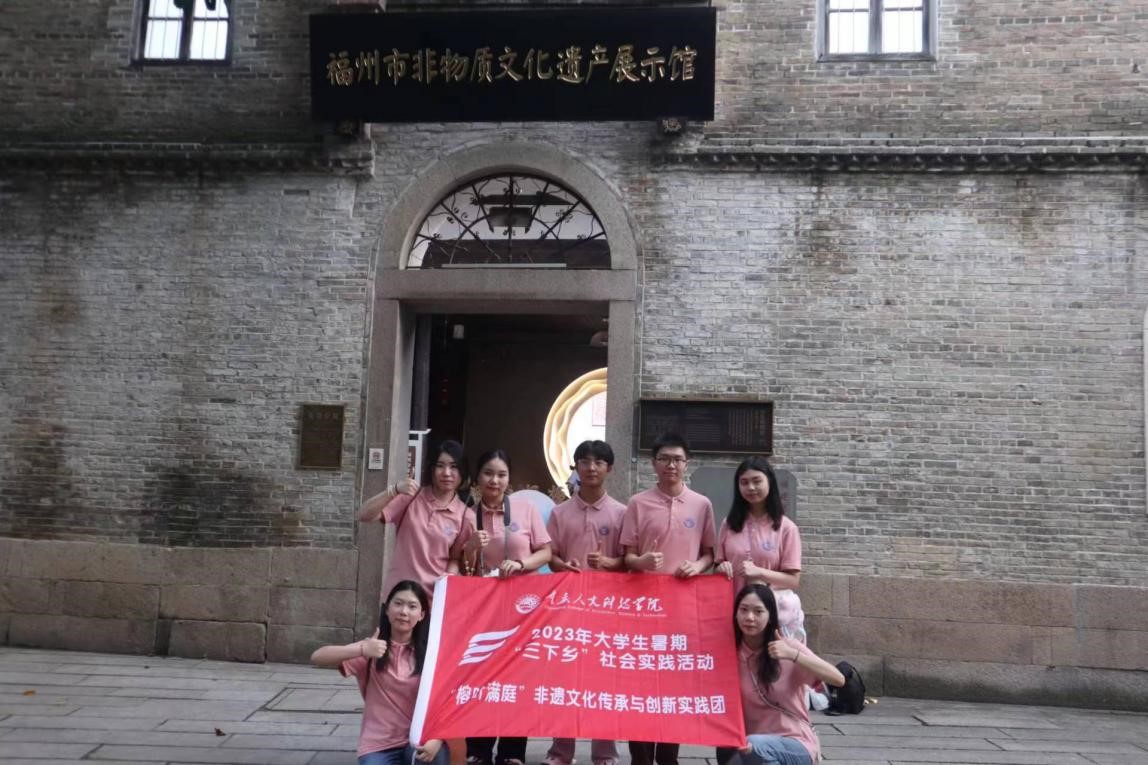 為深入了解福州市的非物質(zhì)文化遺產(chǎn)的內(nèi)涵,增進(jìn)人們對優(yōu)秀文化的認(rèn)同感和歸屬感。重慶人文科技學(xué)院“榕葉滿庭”非遺文化傳承與創(chuàng)新實踐團(tuán)隊于8月8日下午前往福州市非物質(zhì)文化遺產(chǎn)展示館進(jìn)行參觀交流,體驗非遺技藝之美,感受福州非遺獨特魅力,感悟民族文化和福州歷史底蘊(yùn)。