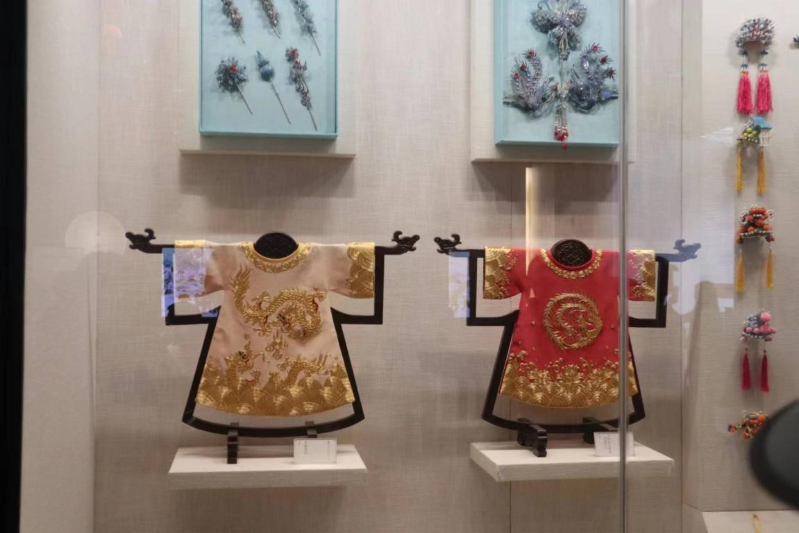 隨后,實踐團(tuán)來到了民族服飾區(qū)域,參觀了福州畬族服飾以及傳統(tǒng)戲劇服飾。閩侯畬族女性服飾,體現(xiàn)了古老的畬族文化,是人類古代服飾的一種遺存形態(tài)。畬族民眾通過服飾裝扮,建立同胞的認(rèn)同感和親和力。傳統(tǒng)古老的畬族女性服飾,不僅傳遞著畬族的原始記憶,還成為今人研究畬族歷史文化的真實資料。精美的戲劇服飾將實踐團(tuán)的成員們帶入了塵封已久的年代,成員們的思緒仿佛飛到了戲劇舞臺上,感受著精美戲劇服飾帶來的視覺震撼;
