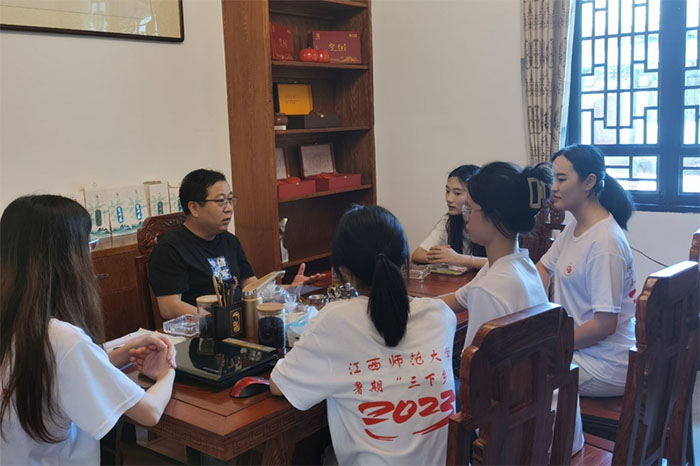 圖為實踐隊在與江西修杭生態茶業有限公司負責人交流。通訊員 盧綺仙 供圖