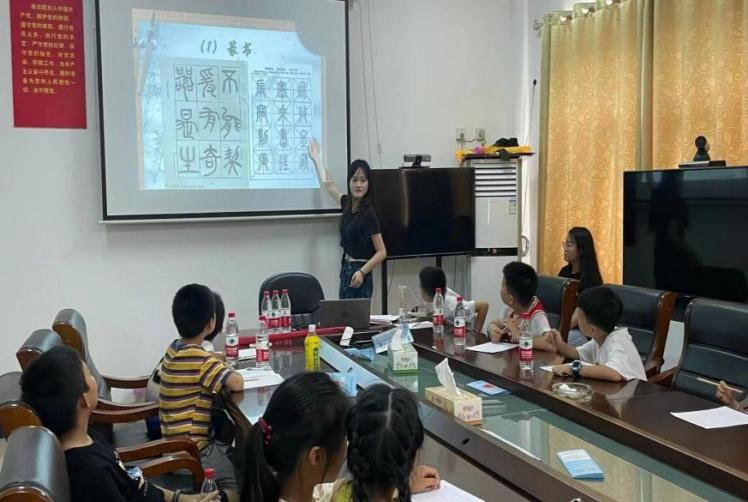 除此之外,團隊還為小朋友們開展了硬筆書法現場教學,實踐團的同學們為小朋友們發放紙筆,演示正確握筆姿勢,并對小朋友們的坐姿進行糾正,宣講了講好普通話、寫好中國字的重要性,為小朋友們的暑期生活增添了幾分色彩。