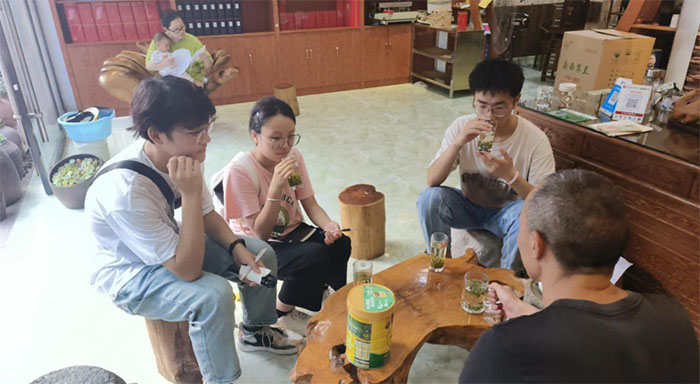 除此以外,隊員們也受到當地人的熱情款待。在了解隊員們的來意后,當地人熱情的用岳西翠蘭來招待隊員們。這讓平時很少喝茶的隊員們也深深地體會到岳西翠蘭獨特的香氣、味道。在輕松愉快的聊天氛圍下,隊員們也了解到茶葉的銷售形勢不容樂觀。