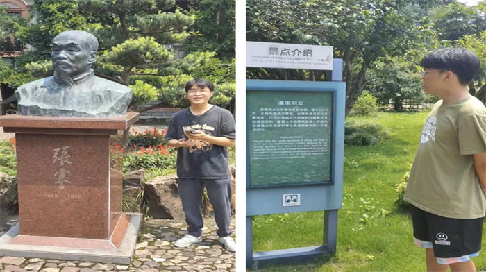 觀賞完荷花池,繼續往里走,來到了小竹林。一陣風吹來,竹子時而被吹彎,時而揚起,仿佛進行著有節奏的舞蹈,那一叢叢低矮的小草也跟著左搖右擺。竹林深處的假山怪石嶙峋,重重疊疊,一個挨著一個。再往里走,就是張謇故居濠南別業了。更加對這位“實業救國”的著名棉紡織領域領頭人有了深刻了解。