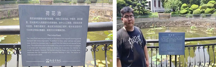 活動過程中,他們首先來到南通博物院,參觀了荷花池荷葉三三兩兩的,慵懶地擠在一起,荷花早已凋零,卻別有一番韻味。花可以觀賞,蓮子可以補人,荷葉可以入藥,蓮藕可以食用。更有“留得殘荷聽雨聲”的古詩詞,意境可真美。