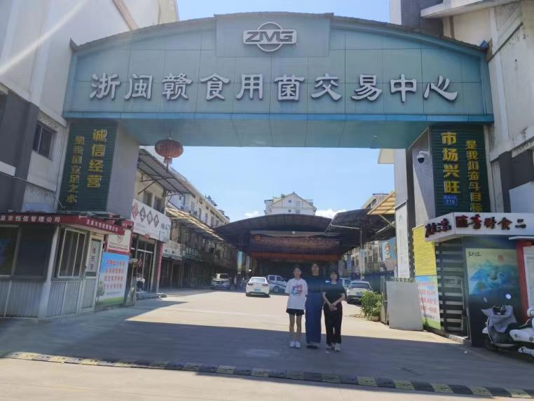 本次行程首先來到浙閩贛食用菌交易中心。浙閩贛食用菌交易中心總占地面積20001平方米,建筑面積23100平方米,擁有店面398間,200多家食用菌經營戶入駐其中。據統(tǒng)計,目前從事食用菌購銷人員達3000余人。通過龐大的購銷隊伍和外地購銷客戶,龍泉的食用菌產品源源不斷地銷往國內外市場。在交易中心,我們采訪了當地的商家,詢問了他們近年來食用菌具體的生產和銷售情況,包括市場競爭、政策支持和發(fā)展前景等方面的感受。對龍泉市的食用菌產業(yè)現狀有了更深刻了解,更利于我們分析其未來可能的發(fā)展前景,從而更具有針對性地研發(fā)適合市場現狀的食用菌產品,推動當地食用菌產業(yè)高質量發(fā)展。