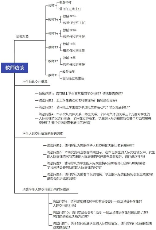 訪談問題8:請問您認為隨著年級的增長,學生的人際交往情況會發生變化嗎?是否會改進或者減弱?T4:我認為隨著年級的增長,學生的人際交往情況會改進,因為他們會變得越來越開朗和積極,并且據我觀察,高年級的學生更加會珍惜彼此之間的友誼,在參加集體活動也不會搗亂,彼此相處地更融洽、舒服。