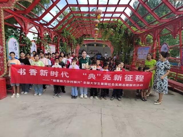 為深入貫徹“加大國家通用語言文字推廣力度”精神,積極響應(yīng)“青春有我,強國有我”的號召,在暑假期間,中央民族大學(xué)赴新疆、內(nèi)蒙古、江西、湖南、安徽五省市推普助力鄉(xiāng)村振興實踐團在祖國大地上煥發(fā)青春風采,用中華經(jīng)典文化典耀鄉(xiāng)土,先后前往新疆阿克蘇地區(qū)烏什縣依麻木鎮(zhèn)四村小學(xué)、內(nèi)蒙古通遼市開魯縣蒙古族中學(xué)、江西省九江市德安縣中等職業(yè)技術(shù)學(xué)校、湖南張家界民族中學(xué)、安徽省六安市舒城縣舒茶鎮(zhèn)五個地區(qū),開展書香“典”亮新征程的主題活動。