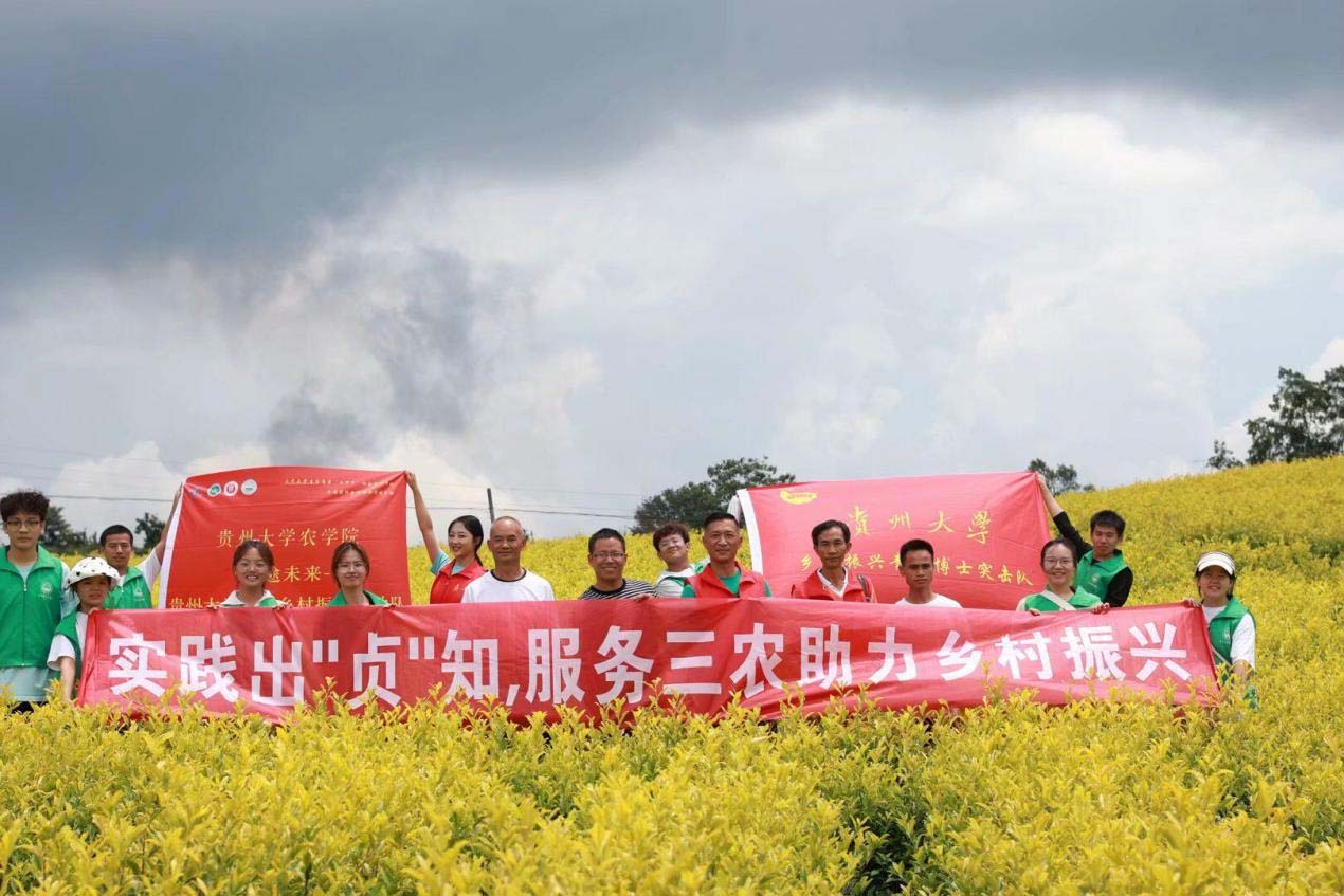 圖 2 謝勇和張鈺與貴州大學助力鄉村振興行動隊在茶葉產業園合影