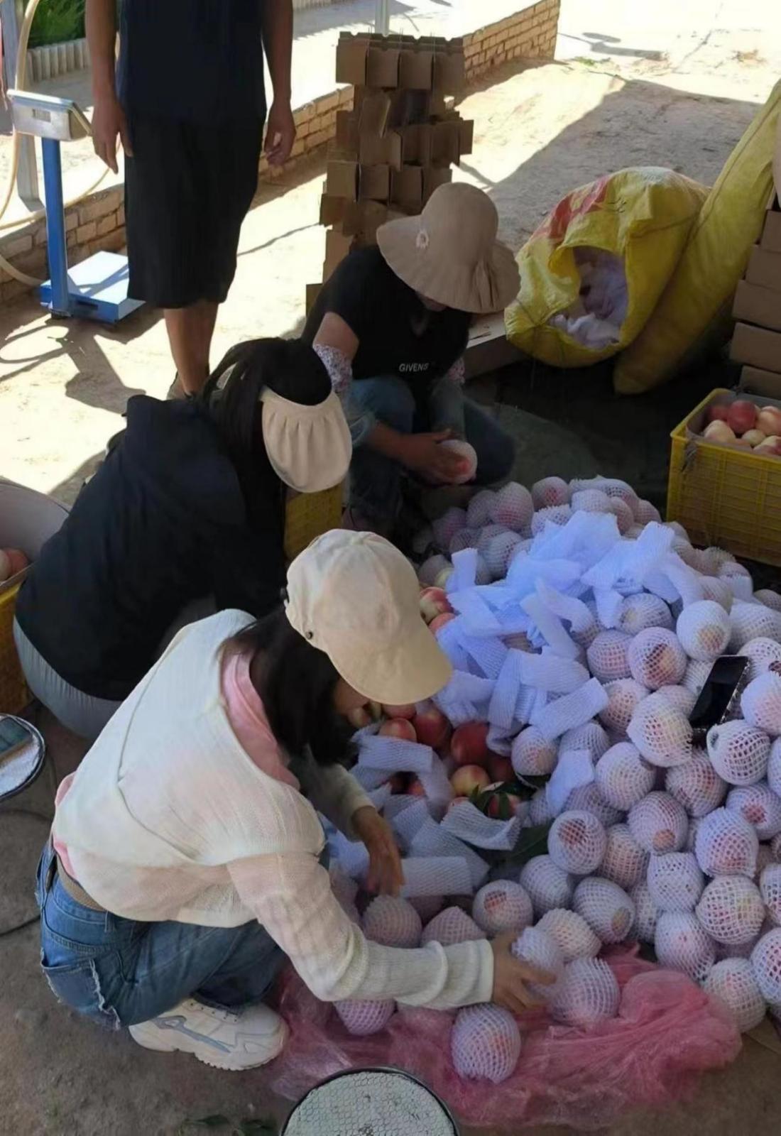 圖為實踐隊成員幫助當(dāng)?shù)剞r(nóng)戶包裝桃子,方便線上售賣。劉藝供圖。