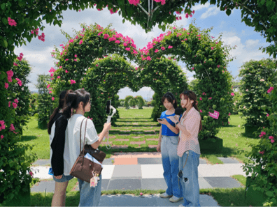 2023年7月3號下午,“綠櫻漫步,風情江谷”百千萬項目突擊隊成員順利到達肇慶市江谷鎮綠櫻莊園并在這進行為期4天的調研實踐。抵達莊園后,莊園總經理助理黃燕梅熱情迎接團隊成員,帶領大家在莊園里的景區進行游覽和介紹,團隊成員通過介紹科普對綠櫻莊園有了更深入的了解,對綠櫻莊園內的娛樂設施、景觀、產品有了真切的認識。同時,黃燕梅女士與團隊成員進行交談,解答成員們對于莊園的疑惑,指出莊園現狀以及他們需要百千萬項目團隊怎樣的幫助,有利于成員們對綠櫻莊園發展提出有益的建議,交流現場熱火朝天。