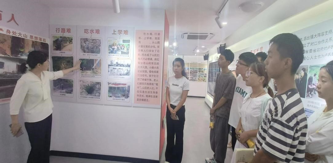 回望來時路。不忘脫貧難。實踐隊員在講解員的帶領下來到教育基地回顧盧氏縣的脫貧歷程。2016年,黨中央制定的脫貧攻堅五年計劃橫空出世,打響了脫貧攻堅的總攻領2020年2月,河南省政府正式宣布盧氏縣退出貧困縣,至此,盧氏縣正式實現脫貧“摘帽”。