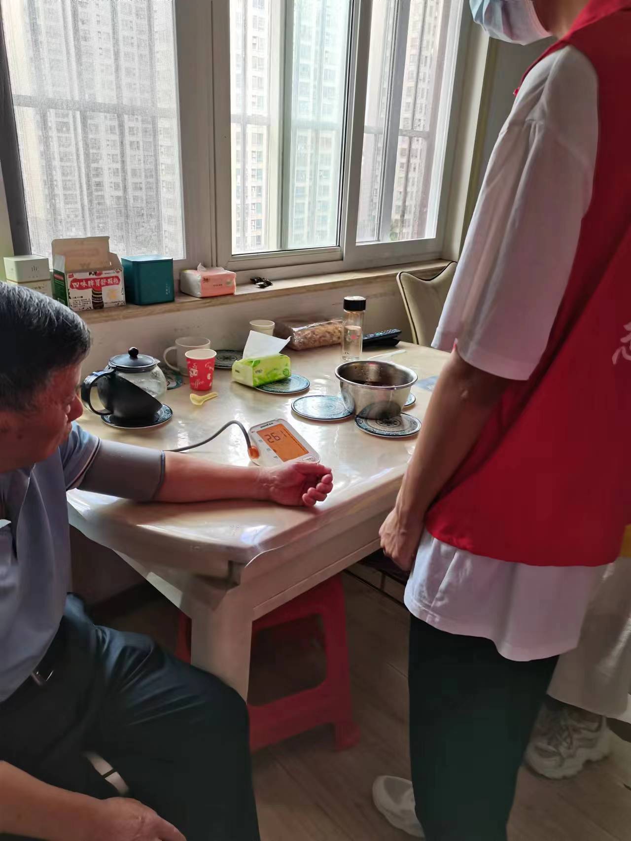隨后負(fù)責(zé)人帶領(lǐng)我們走訪了社區(qū)的獨(dú)居老人,這次活動(dòng)讓我們小隊(duì)成員感觸至深。我們走進(jìn)各位老人家中,發(fā)現(xiàn)有老伴不幸離世依然笑對(duì)生活的,有身體癱瘓?jiān)诖矡o(wú)法行走的,在進(jìn)行慰問時(shí)雙方都流下了淚水,我想這就是志愿活動(dòng)的意義。