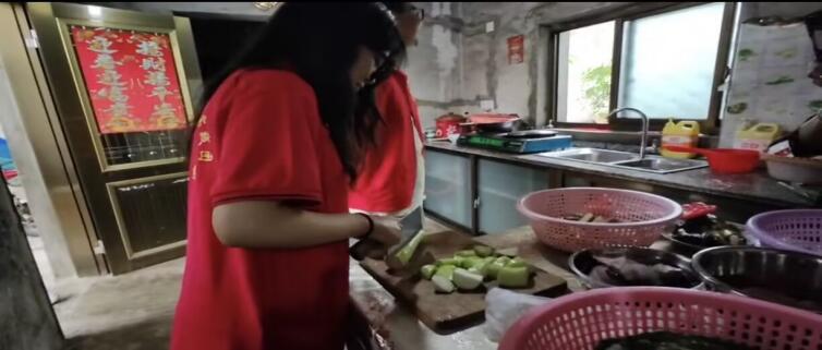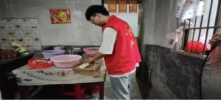 上面兩圖為團隊成員趙正麗和丁學成幫助老人做菜
