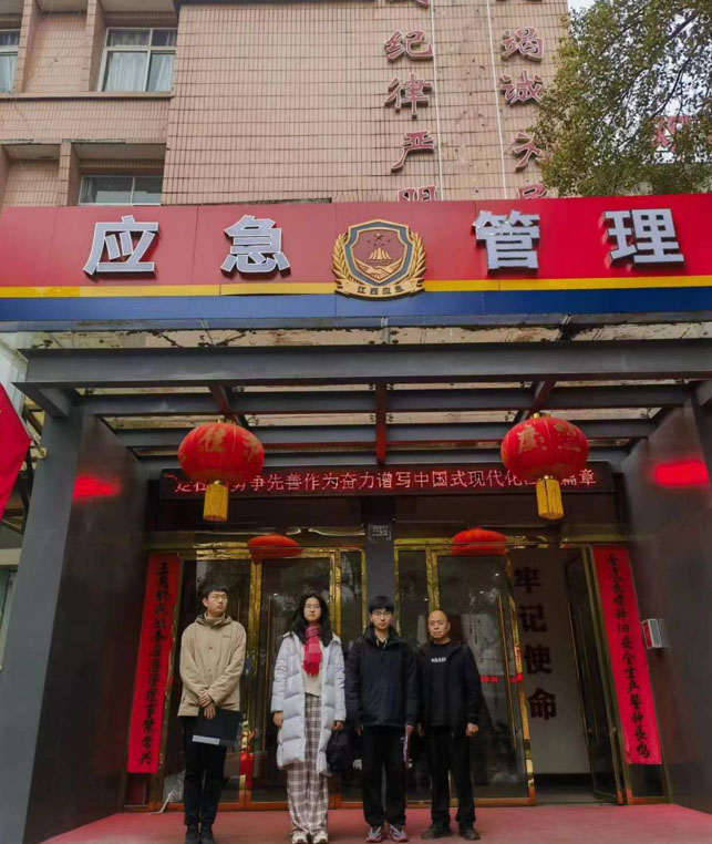 實(shí)踐隊(duì)伍與應(yīng)急管理局負(fù)責(zé)人在萬載縣應(yīng)急管理局門前的合照