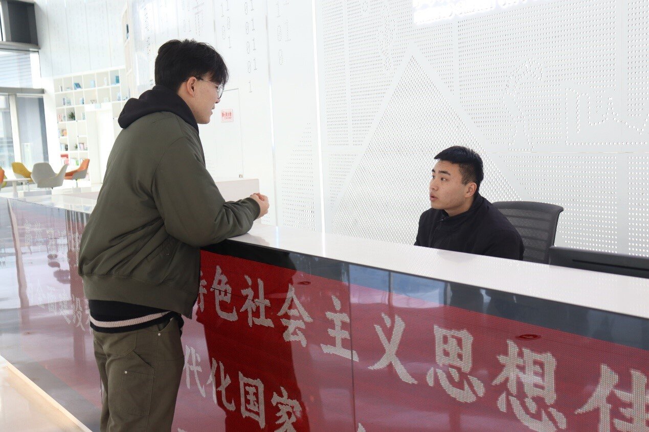 圖為實踐隊員向當地農村書屋負責人了解情況,得知書屋位置優越,面向全體村民免費開放,是村民們“家門口”的精神寶庫。