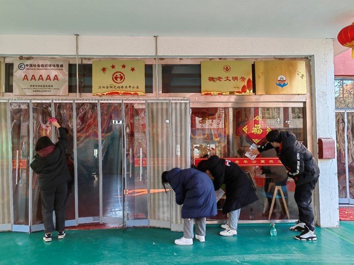 志愿者們被安排各自的任務(wù),比如擦拭門窗、幫忙清潔房間和陪護老人體檢等,當(dāng)然還要拍攝照片留作紀(jì)念,與工作人員溝通等等。同時,還有一位同學(xué)專門外出替老人尋求打印社聯(lián)系方式以便獲取需要的資料。
