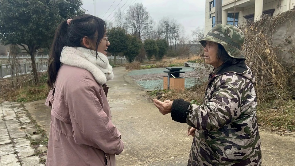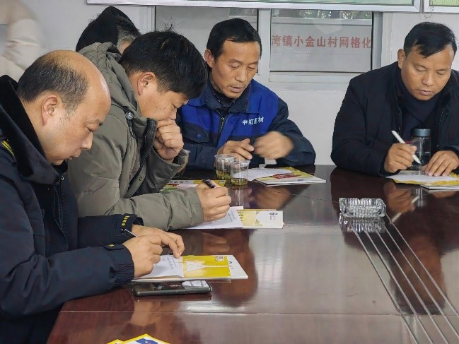 隨著村民們的到來,普法宣傳活動正式開始。本次普法宣傳活動共分為三個部分,即普法宣講、情景劇展演以及法律糾紛調查與法律援助中心宣傳。普法宣講環節,隊員梁曉睿以通俗易懂的語言,講解了“老有所養”、“民間借貸”等與村民日常生活息息相關的內容。在普法情景劇中,隊員們自編自導自演,以喜聞樂見的方式為村民們宣傳了“反詐騙”的知識,普及了“老年人醫療保障”的制度。最后,隊員姜佩嫻向村民們介紹了武漢大學法律援助中心,其他隊員向村民發放了自制的普法宣傳單和調查問卷,調查了村民們日常生活中最常見的法律糾紛。小金山村書記對項目組自制的圖文并茂的普法小冊子給予了高度的評價。