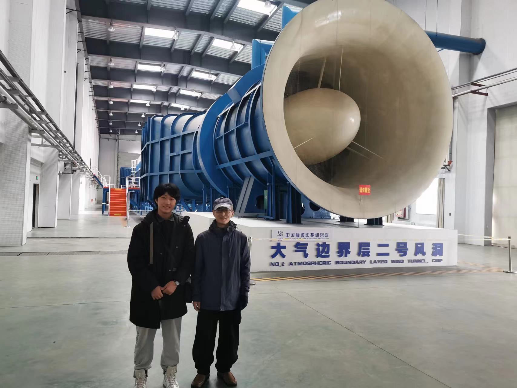 參觀建筑及設備后,小組成員繼續前往大氣實驗室,其中的風洞實驗室是華北地區最大的幾個風洞實驗室之一,研究員閆江雨老師為小組成員耐心講解了整個實驗室的工作原理和進行項目。