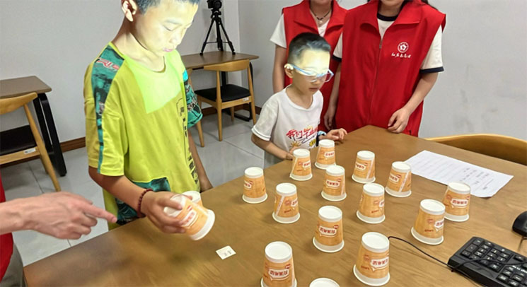 第三個游戲“詞語消消樂”,準備幾組詞語,用紙杯蓋住,每組每次派出兩名小朋友揭開一組詞語?赐曛笱杆偕w住,如果兩組詞語相同,則取走該組詞語。游戲過程中,小朋友們需要快速記憶和比對詞語,鍛煉了他們的觀察力和記憶力。