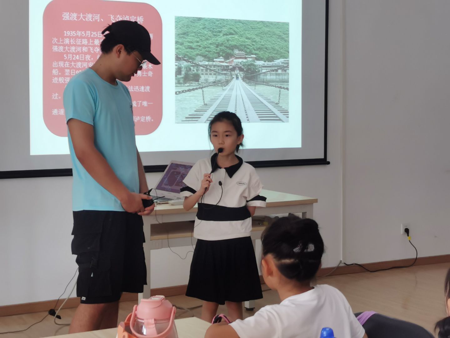 圖為紅色教育課,在實踐隊員準(zhǔn)備講述“飛奪瀘定橋”故事時,小朋友主動上臺講述她所了解的“飛奪瀘定橋”,她對歷史的理解值得我們學(xué)習(xí)。