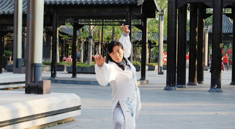 圖為夏克平老師在華祖庵帶領(lǐng)大家打五禽戲 通訊員彭盛琦 攝