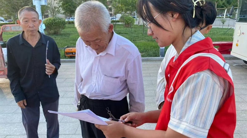 圖為團(tuán)隊成員對中年人進(jìn)行問卷調(diào)查