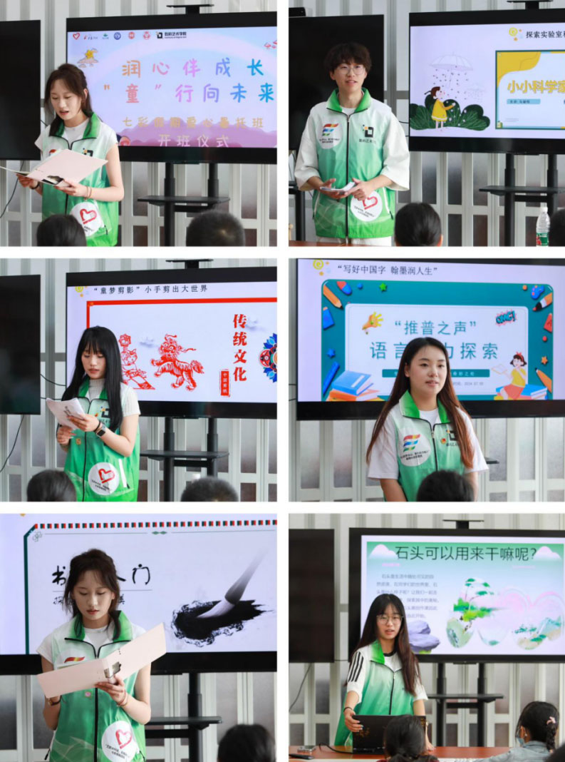美育潤無聲,童心繪七彩實踐團隊成員來自該校數碼藝術學院開設的六個專業,他們為冶山街道七彩假期暑托班兒童打造多維度、綜合提升的美育課堂,用美育做教育的浪漫注解,通過開設“奇石妙想”石頭畫創作課、鄉村振興彩繪課堂、“寫好中國字”書法課堂、“歌聲頌祖國”音樂鑒賞課等趣味特色課堂,讓學生接觸和學習各種文化藝術知識,提升他們的藝術素養和審美能力。