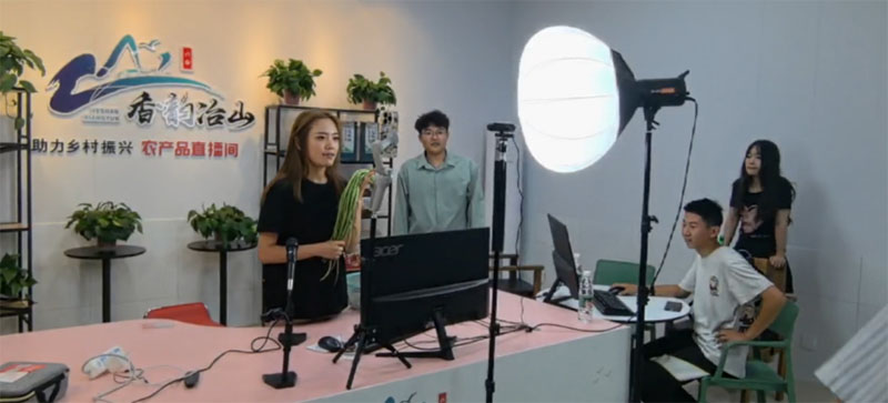 直播過程中,團隊成員分成直播帶貨組和探秘田間地頭組兩個青春方陣,直播帶貨組負責在直播間介紹江淮分水嶺秈米、東溝鹽水鵝、茶葉、冶山貢雞等六合特色農產品,探秘田間地頭。實地走訪農戶,田間,展現從種植到餐桌的綠色之旅,互動問答,拉近城鄉距離,農民匠人現場演繹,增信促購,用接地氣的語言和知識儲備,在云端展示六合鄉土文化和美食文化。此舉不僅搭建城鄉交流橋梁,激活鄉村經濟,實現雙向流通,更深度踐行了數字農業經濟賦能鄉村振興的實踐要求,從校園到田間,從課堂到鄉村,扎根鄉土,為鄉村振興貢獻源源不斷的青春力量,以“青春夢”托起偉大的“小康夢”。