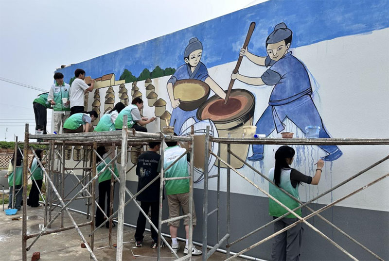 手繪鄉村景,鄉韻入丹青 冶山街道有千年悠久歷史,又是江蘇省內重要的涉農街道,近年來大力發掘農民畫、石柱林、冶山礦坑等文旅資源,不斷擦亮詩畫田園新底色。“青心筑夢冶山,童行助力振興”社會實踐隊深度挖掘冶山街道村莊地域特點、文化特色、產業特質等素材,設計專屬手稿,創作出“自然之饋·冶山醬香”“時光醞釀·冶山古醬”等具有顯著冶山特色的主題墻繪,助力美麗鄉村和宜居鄉村建設,為農業農村現代化貢獻青春力量。