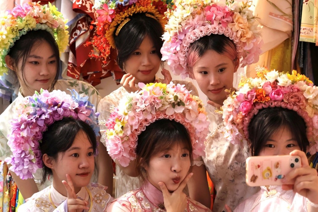 圖為實踐隊員體驗簪花文化 陳佳寶 攝