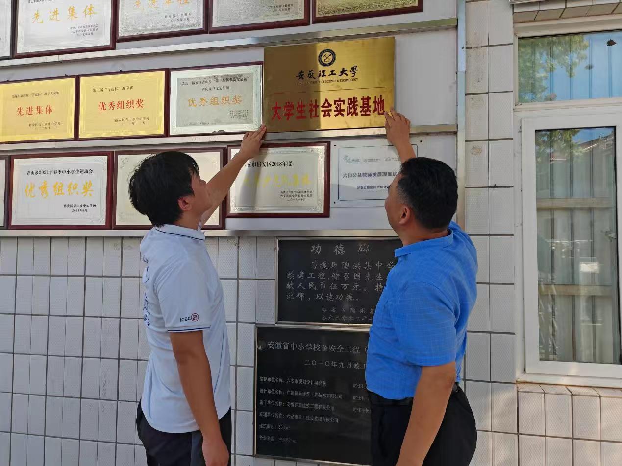 青年助力基礎教育,鄉村振興你我同行。為增強大學生社會責任感,傳遞青年友愛奉獻精神,創新育人育才方式,引導青年人才情系鄉村,7月5日,安徽理工大學化工與爆破學院“興紅向農”社會實踐調研團前往裕安區陶洪集學校實地調研并舉行“安徽理工大學社會實踐基地”簽約授牌儀式。陶洪集學校洪校長帶領“興紅向農”團隊實地調研并作出詳細介紹。