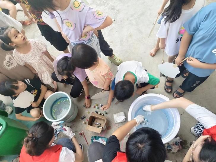 2024 年 7 月 15 日,星期一,邵陽縣利群村迎來了一場別開生面的手工實踐課堂。充滿熱情的“藝”心志愿者走進村莊,為當地的小朋友們帶來了一堂精彩的非遺漆扇制作課程。