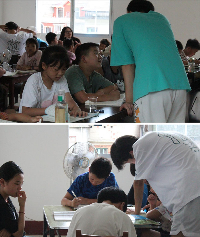 時間轉(zhuǎn)瞬即逝,經(jīng)歷了中午的短暫休息,我們開始了下午的課程。太陽的毒辣在我們的意料之外,但小朋友們卻未因此而打“退堂鼓”。我們分批次對小朋友進行管理,不同人的分管不同的的年級,給小朋友進行課后的作業(yè)輔導(dǎo),他們認真的模樣,實在是令人為之心動,同時他們抓耳撓腮的樣子,也令人深覺有趣。