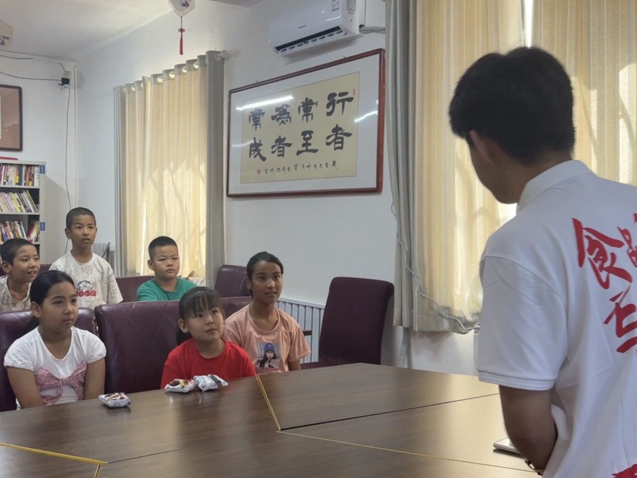 2024年7月8日上午,食品科學與工程學院“食品安全宣講團”與上恰其社區新時代文明實踐站面向社區中小學生開展食品安全宣講活動在庫爾勒市上恰其文苑舉行。宣講活動期間社區負責人王萌萌發表了熱情的講話,強調了活動的重要性與維護現場紀律,并鼓勵小朋友們珍惜學習機會。