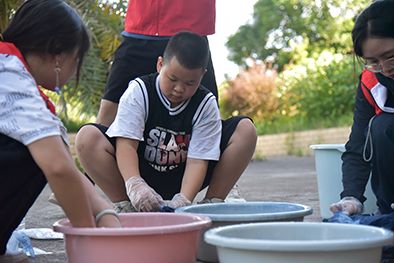 隨后,志愿者們還親自指導(dǎo)孩子們動(dòng)手體驗(yàn)藍(lán)印花布的制作過程。從選布、繪圖、刻板到上漿、染色、晾曬,每一個(gè)步驟都充滿了挑戰(zhàn)和樂趣。孩子們?cè)谥驹刚叩膸椭拢J(rèn)真操作,感受著傳統(tǒng)工藝的魅力。通過親手制作,孩子們不僅學(xué)到了技能,更對(duì)傳統(tǒng)文化有了更深的了解和認(rèn)識(shí)。