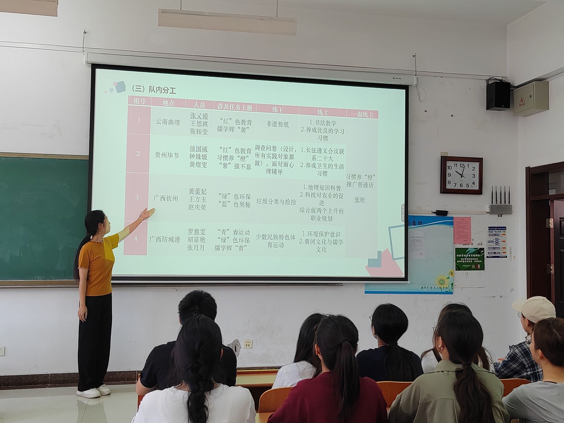 會議中隊員們積極參與討論,實踐隊隊員們討論并通過了“自、紅、藍、青、綠、橙、黃”七色計劃,以期在“三下鄉”活動中提供全方位的關懷與支持。團隊將進行數據信息采集,通過設計調查問卷深入了解留守兒童的心理狀況。計劃開展黨的理論政策宣講,以“回憶長征路”為主題,感受紅色文化的魅力,激發他們的愛國情懷和奮斗精神。并通過生動的故事和互動,讓孩子們了解黨的歷史,培養對黨的敬仰和對國家的認同感,進一步增強民族團結意識。在支教和科普講座方面,實踐隊線下隊員將結合地理專業知識,開展“藍色奧秘”活動,引導孩子們探索自然的奧秘;“青春運動”組織體育活動,培養健康生活方式等。最后,還有優秀傳統文化的弘揚。儒學輝“黃”活動將講述儒家經典,讓孩子們體驗書法,領略中華文化的博大精深,激發他們對傳統文化的熱愛。