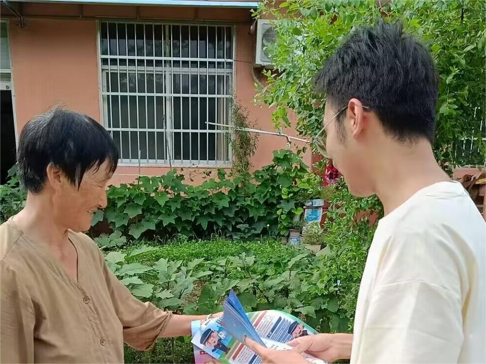 圖為志愿者向村民講解并宣傳反詐知識(shí)與傳單。多彩大學(xué)生網(wǎng) 劉浩成 供圖