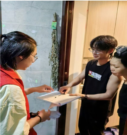 志愿服務期間,本隊人員積極參與,與相關人員積極溝通,在完成自身工作的同時熱心服務群眾,在信息采集過程中,我們發現該社區環境優美,有眾多綠植,社區居民十分熱情好客,很多人都主動邀請我們進屋坐坐,填寫信息時,遇到不會寫字的老人,我們也會積極幫助他們填寫,總之,這是一個充滿生機與活力,富有人情和生活氣息的一個社區。