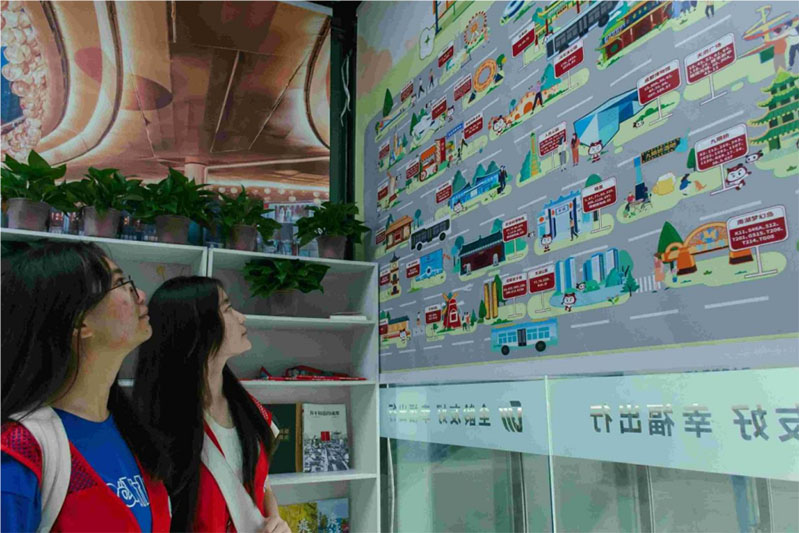 隨后實踐隊進入金沙樞紐站,參觀了金沙樞紐站的巴士驛站及公交專線客服中心,站內一應俱全的設施真正實現了“冷可取暖,熱可避暑,渴了喝水,累了歇腳”的全方位便民服務,為市民的出行提供了極大的便利。